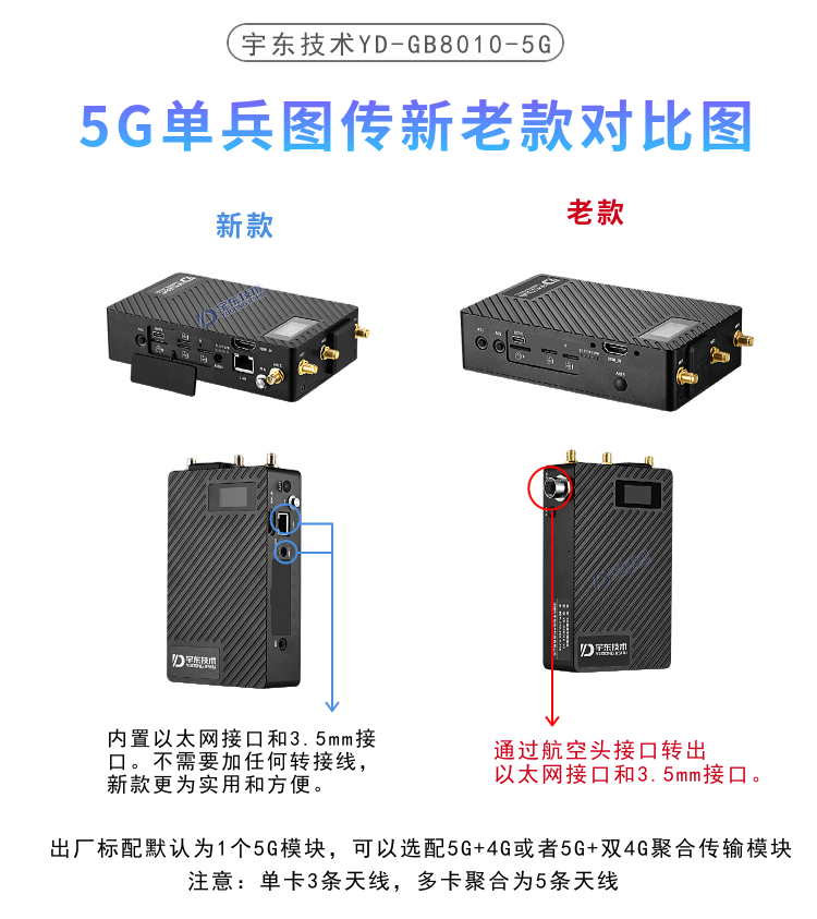YD-GB8010-5G本款成功接入過:海康平臺、大華平臺、南方電網VPN內網平臺、華平平臺、科達平臺等主流單位平臺,5G單兵圖傳產品為新研發的,具備不少于兩個SIM卡槽,同時支持不少于兩個不同運營商網絡,專門針對自然災害,國家消防救援,應急通信指揮調度的新標準而開發,我們的參數基本完全滿足各種需求,各地方不一樣分單卡和多卡,詳細資料具體可以聯系公司業務。5G單兵圖傳是公司針對應急救援指揮、公安、反恐作戰、消防救援、邊防執勤、海警海關巡檢、部隊拉練演習、森林消防等開發的設備,產品采用一體化設計,集成視頻硬件編碼、5G/4G網絡、北斗定位、數據存儲、鋰電池等模塊。可通過HDMI輸入 接口與無人機、DV攝像機等攝像設備組合使用。具有輕便小巧、使用靈活方便、功能全面、可靠性高等特點,現場工作人員可以和指揮部通話,接受領導發送的各種指令。